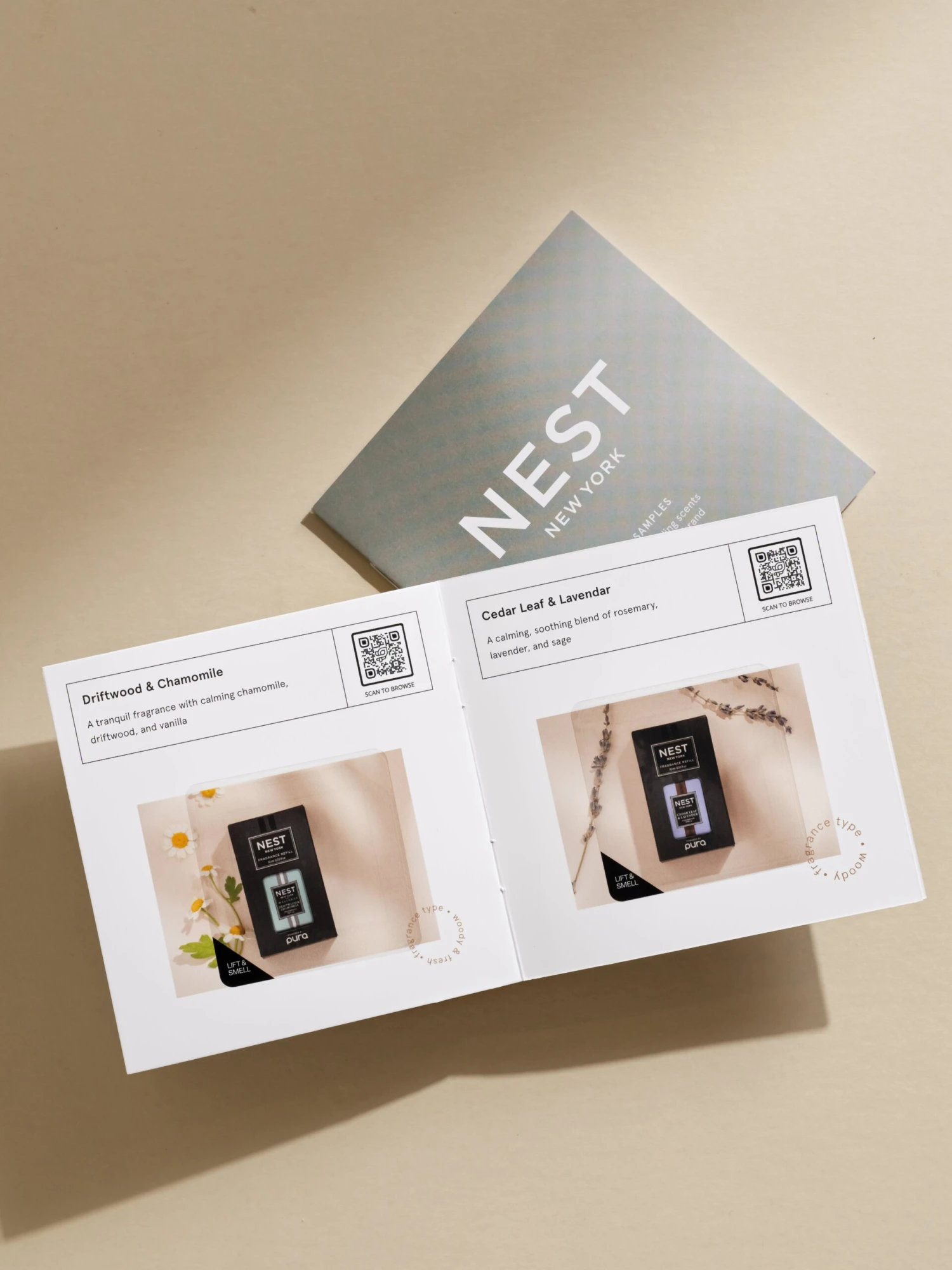 Our scent sample booklets were created to help you find scents that you love in a quick and easy way. This booklet includes seven premium top-selling scent samples—simply lift the scent film to experience the fragrance.